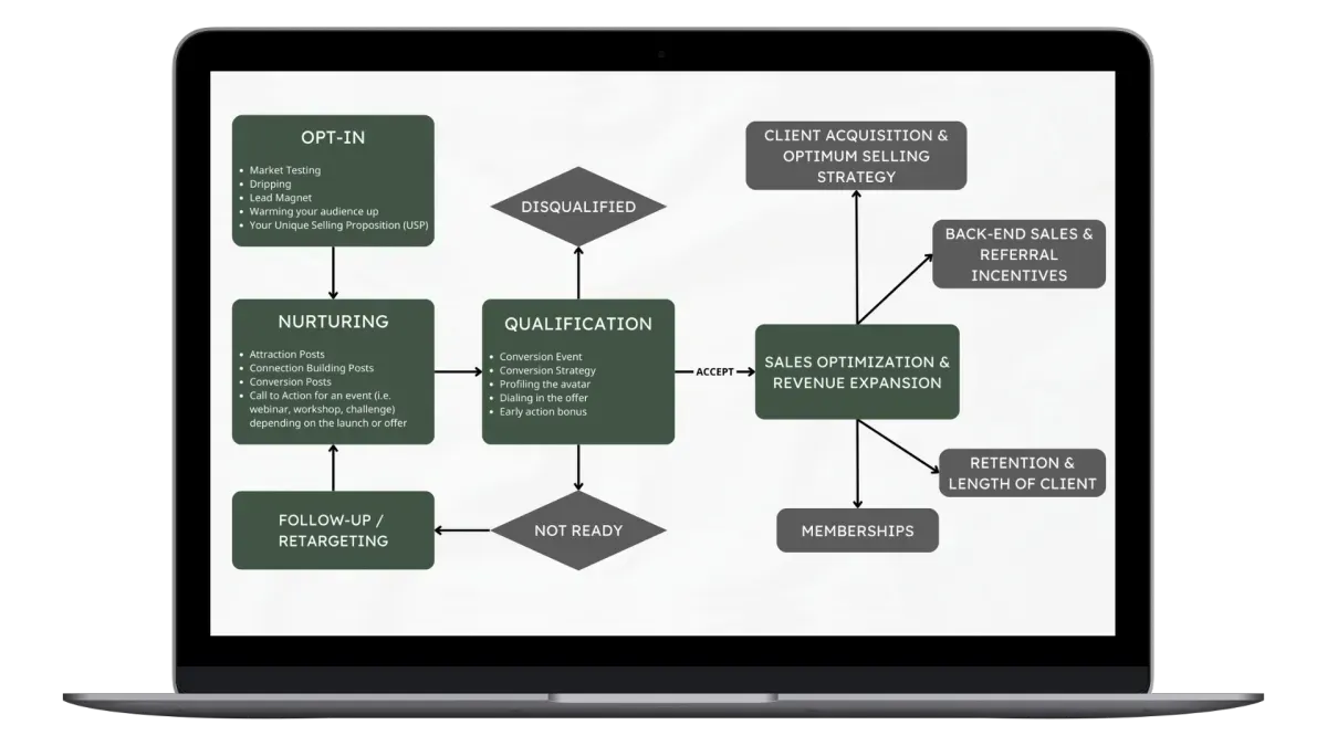 Our proprietary method blends together data-driven decision making, industry research, marketing testing and studying your offers and brand to curate an authentic strategy backed by systems, for YOU!